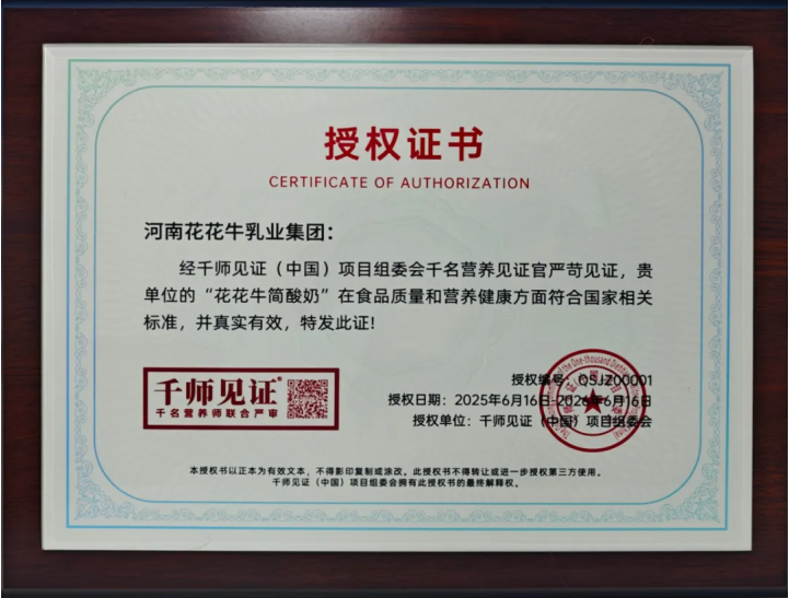 隨后雙方舉行授牌儀式。據(jù)了解,河南花花牛乳業(yè)集團(tuán)是*通過千師見證(中國(guó))項(xiàng)目組委會(huì)“千名營(yíng)養(yǎng)師”認(rèn)證的企業(yè)。此次授牌含金量相當(dāng)之高,標(biāo)志著花花牛在質(zhì)量管控、技術(shù)創(chuàng)新、產(chǎn)品健康方面,為區(qū)域乳業(yè)高質(zhì)量發(fā)展樹立了新范式。
